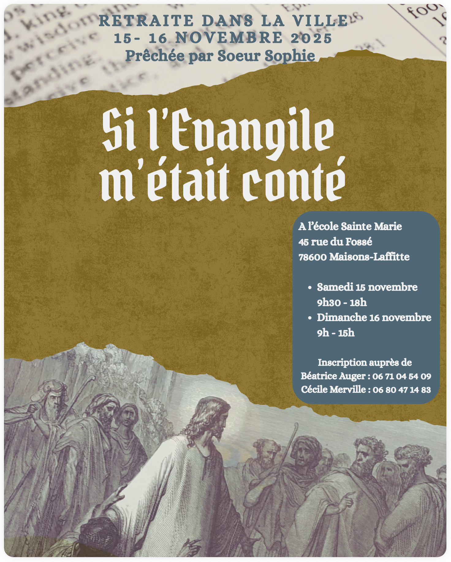 Retraite pour DAMES : Si l'Évangile m'était conté. Par soeur Sophie de l'Incarnation.