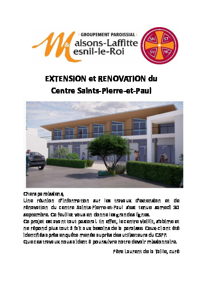 Feuillet - EXTENSION et REVOVATION du Centre Saints Pierre et Paul_db