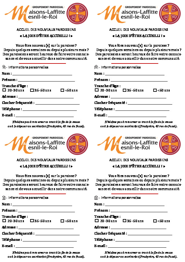 Affichette nouveau paroissien !