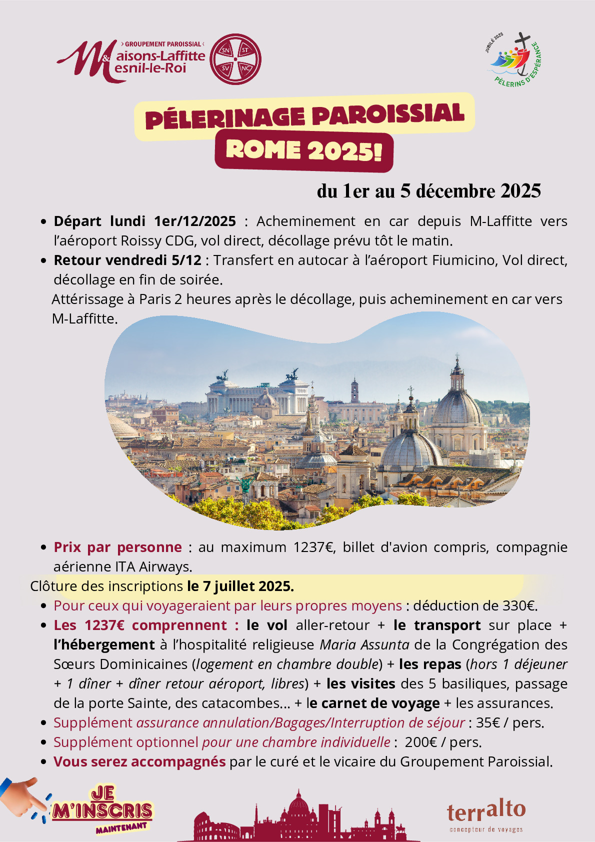 Inscription Pèlerinage ROME 2025
